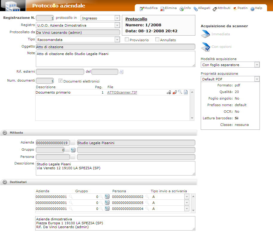È possibile acquisire e archiviare file e documenti in qualsiasi formato di dati. L’acquisizione può avvenire documento per documento, tramite funzioni di upload e scannerizzazione del supporto cartaceo, o in via massiva tramite etichette autoadesive o codici a barre.