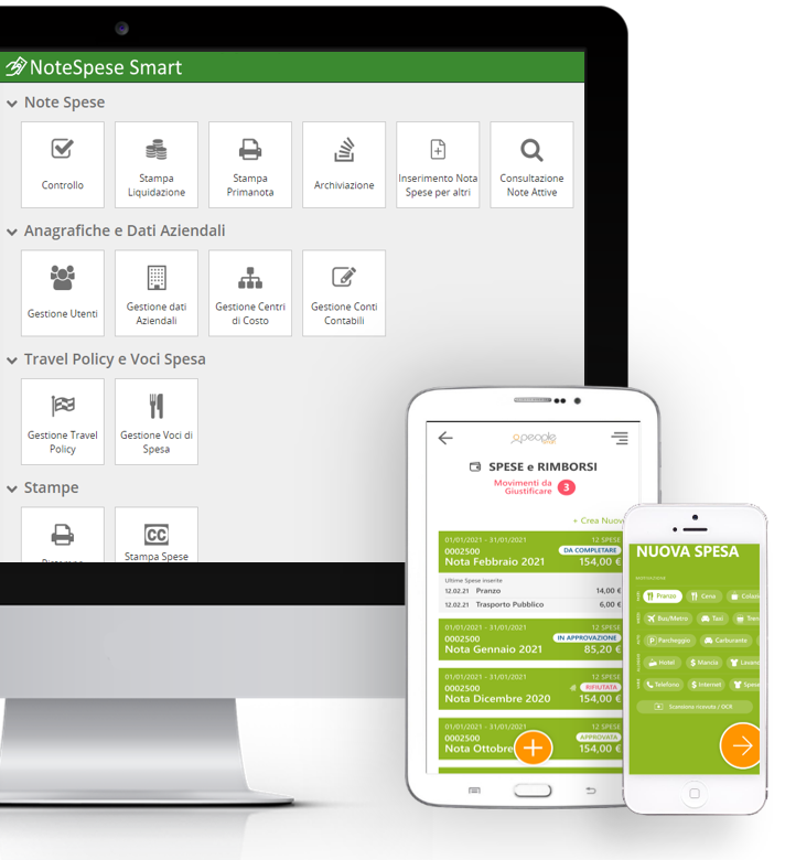 Con People Smart puoi collaborare in modo efficiente con chi elabora le buste paga dei dipendenti, esportando i dati utili alla produzione dei cedolini e il riepilogativo dei rimborsi spese.
